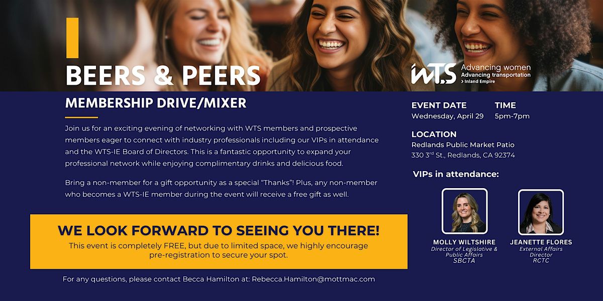 Join us for an exciting evening of networking with WTS members and prospective members eager to connect with industry professionals and meet the WTS-IE Board of Directors. This is a fantastic opportunity to expand your professional network while enjoying complimentary drinks and delicious food.