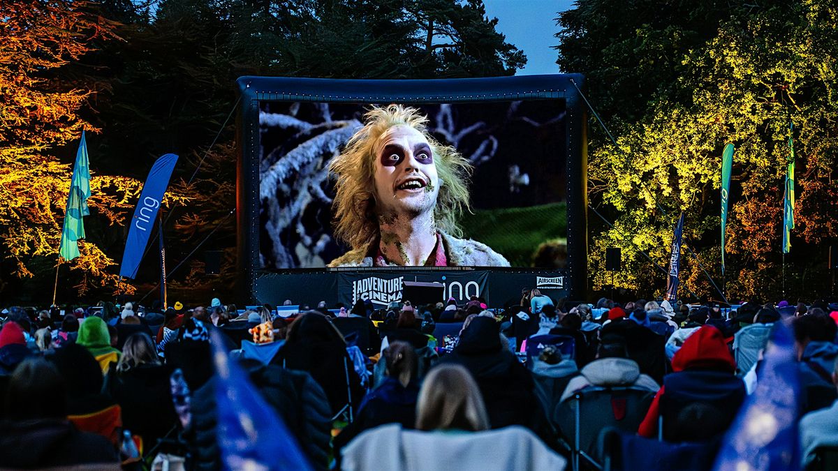 It's showtime! Bring a blanket or camping chair, wrap up warm, and watch Beetlejuice on a giant cinema screen under the stars!