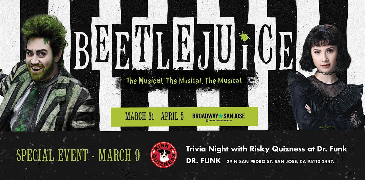 #Beetlejuice #ItsShowtime #StrangeAndUnusual #TriviaNight #BroadwaySanJose #DrFunk #RiskyQuizness