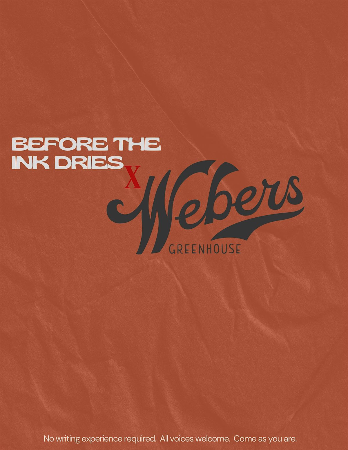 Hosted inside Weber’s Greenhouse, this session invites you to slow down, breathe deeply, and write in community—surrounded by living things, natural light, and intentional stillness.