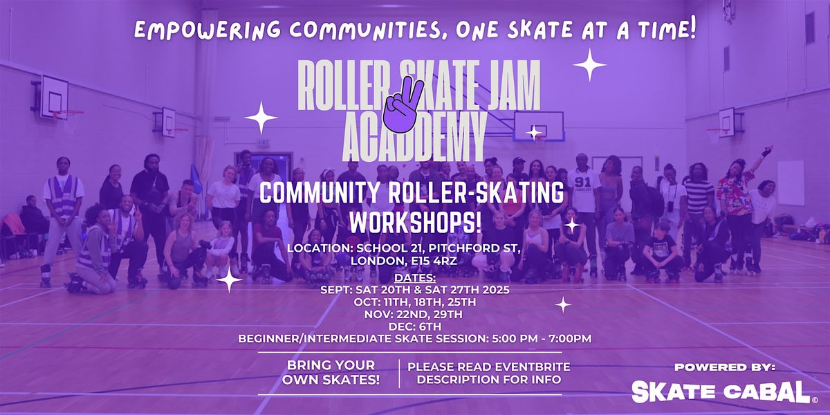 Skate Cabal’s Skate Jam Academy: At Skate Cabal, we’re all about empowering our community through roller skating, fostering inclusivity, well-being, and social change, one skate at a time. Whether you're a total beginner or looking to level up, our Skate Jam Academy is the perfect space to learn, grow, and jam with friends.