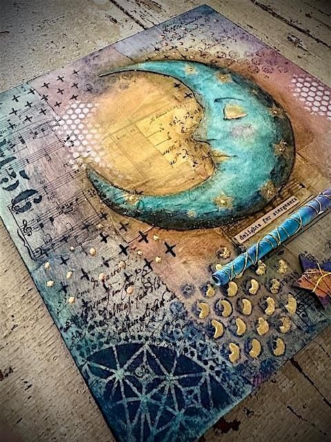 If you’ve ever wanted to give mixed media a try, this project is a great place to start. In this class, you will learn a variety of mixed media techniques to create a 10x10 art piece on a wood panel, ready to hang. Students will begin by creating a vibrant layered background, using collage papers, acrylic paints, stencils and rubber stamps. Techniques include creating a fabric image transfer, making fabric beads, blending colors, and experimenting with metallic leaf. All materials and tools provided, along with detailed instructions to take with your finished artwork.