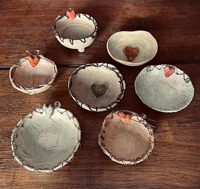 Molding clay by hand is a great way to ease into the new year and connect to your creative self. In this class, you will learn how to work with air dry clay by creating and embellishing paper clay bowls and beads with organic, earthen textures. Mold and shape one bowl in class, and embellish a second bowl with stitching, wire, acrylic paints, rubber stamps and handmade beads. If you have a rolling pin, please bring it. All other materials and tools provided, as well as detailed instructions for you to take with your creations.