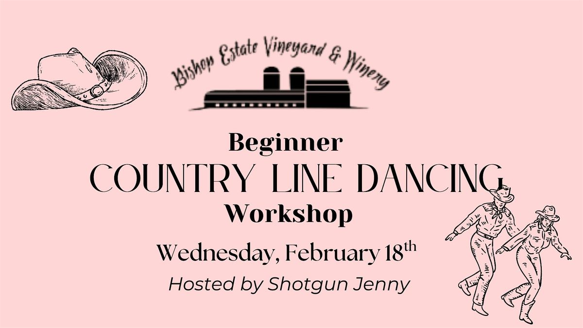 Come join us for a fun-filled night of beginner country line dancing workshop with the one and only Shotgun Jenny at Bishop Estate Vineyard and Winery! This event is perfect for those who are new to line dancing or want to learn the basic steps to a variety of popular country dances. No experience? No problem—this night is all about learning and having fun!