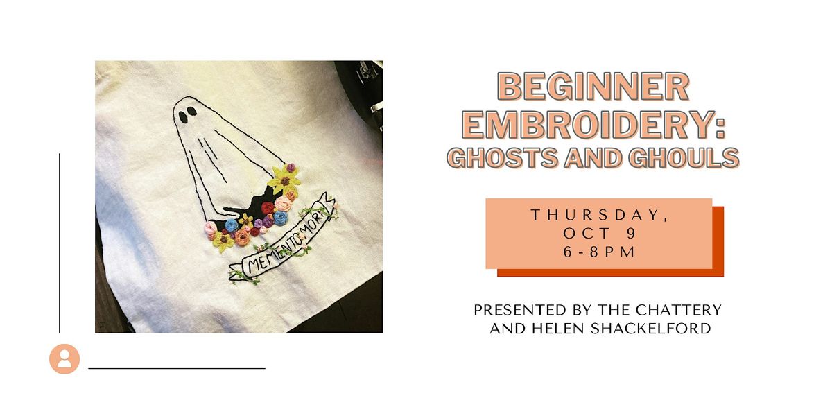We’ll cover foundational stitches like the running stitch and back stitch, with plenty of step-by-step guidance and examples provided. This hands-on workshop includes all materials, so you’ll leave with your very own ghostly hoop creation and the skills to keep stitching on your own.
