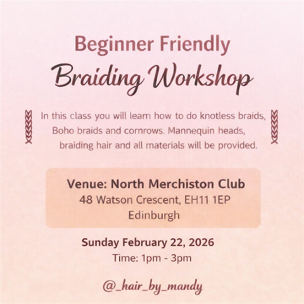 Hello everyone, I am delighted to announce the upcoming braiding class in Edinburgh, where I will be sharing techniques for creating knotless braids, boho braids, and cornrows.