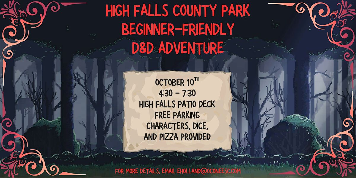In this thrilling adventure, players will learn the rules of Dungeons and Dragons Fifth Edition under the guidance of an experienced DM and work together to gather samples from a corrupting forest to help against an evil necromancer. Level 1 characters, dice, and pizza will be provided. Kids ages 11+ and parents/guardians are welcome, and basic reading and math skills are necessary to play.