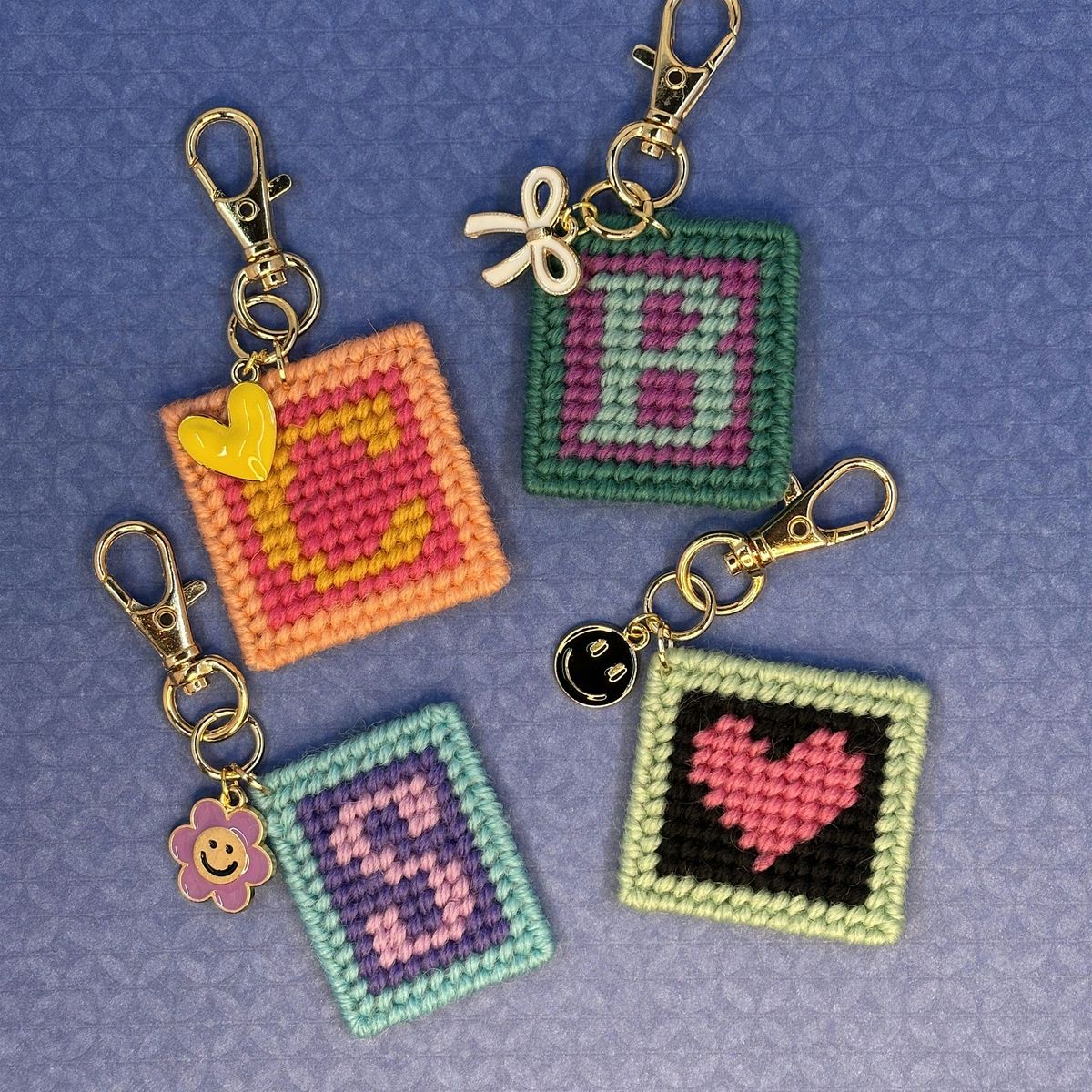 Beginner Needlepoint Monogram Bag Charm workshop in Montgomery County, Md.