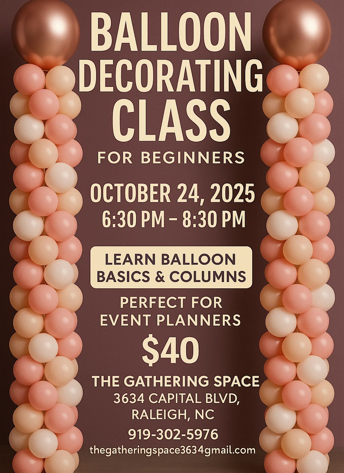 Beginners and event planners should take this balloon class because it opens the door to creativity while providing a valuable and marketable skill. For beginners, balloon design is an accessible, hands-on art form that allows you to instantly transform a space and bring joy to any event. For event planners, learning balloon basics and techniques like columns and garlands gives you an edge in the industry by cutting costs, expanding your service offerings, and creating unforgettable experiences for clients. Balloon décor is versatile, trendy, and in high demand, making it an essential tool in an event planner’s toolkit. Whether for personal celebrations or professional events, mastering balloon design builds confidence, adds flair, and sets you apart as a go-to expert in creating show-stopping atmospheres.