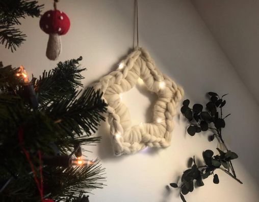 Enjoy the unique Christmas experience of making a gorgeous Chunky knitted Star wreath perfect for complete beginners!Come and style up your home this Christmas and make a gorgeous giant yarn, Eco-friendly Christmas wreath! I will teach you how to make your very own eco-friendly Christmas wreath that will last years to come using British Wool or a vegan option available on request!