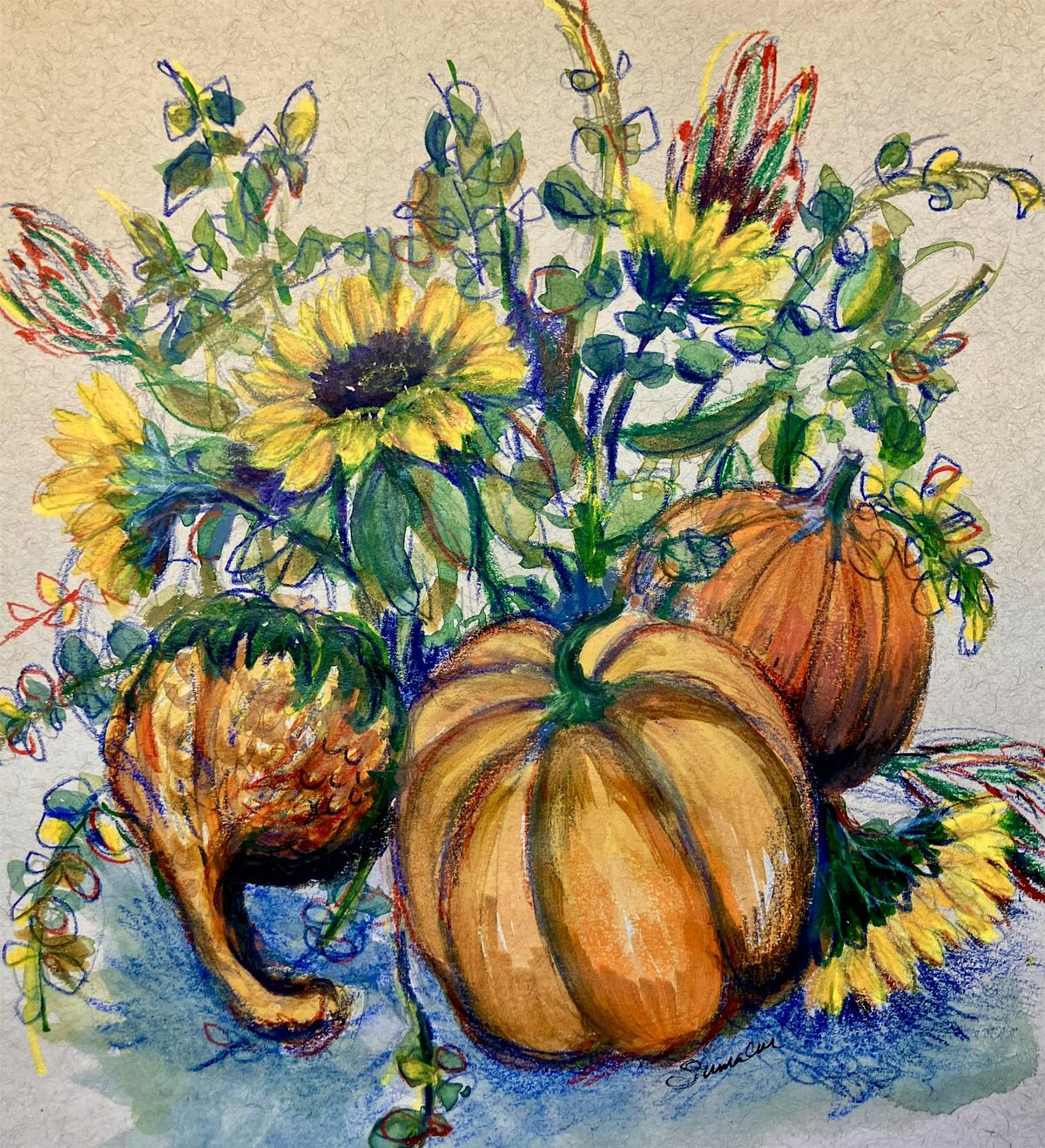 Get creative in this season-inspired still life sketching workshop, perfect for beginners! Learn to capture an autumn arrangement, featuring farm-fresh flowers, fruit and gourds in vibrant hues. We’ll explore how to use watercolor along with colored pencils, water-soluble crayons, and other media for expressive results!