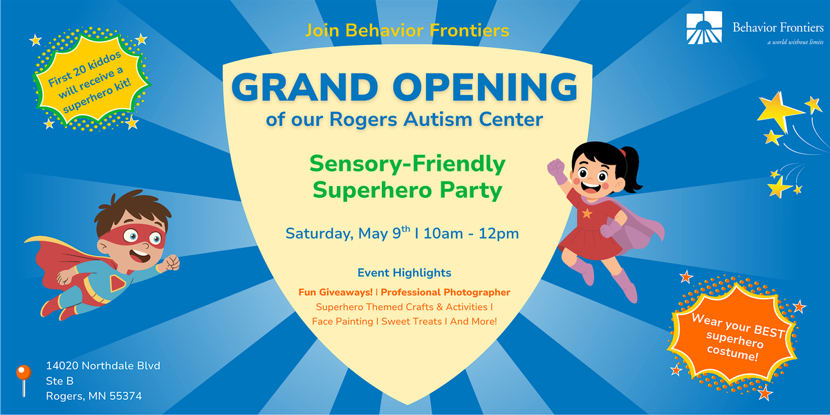 Join Behavior Frontiers as we celebrate the grand opening of our brand-new Rogers autism center with a sensory-friendly superhero party! 🎉💙