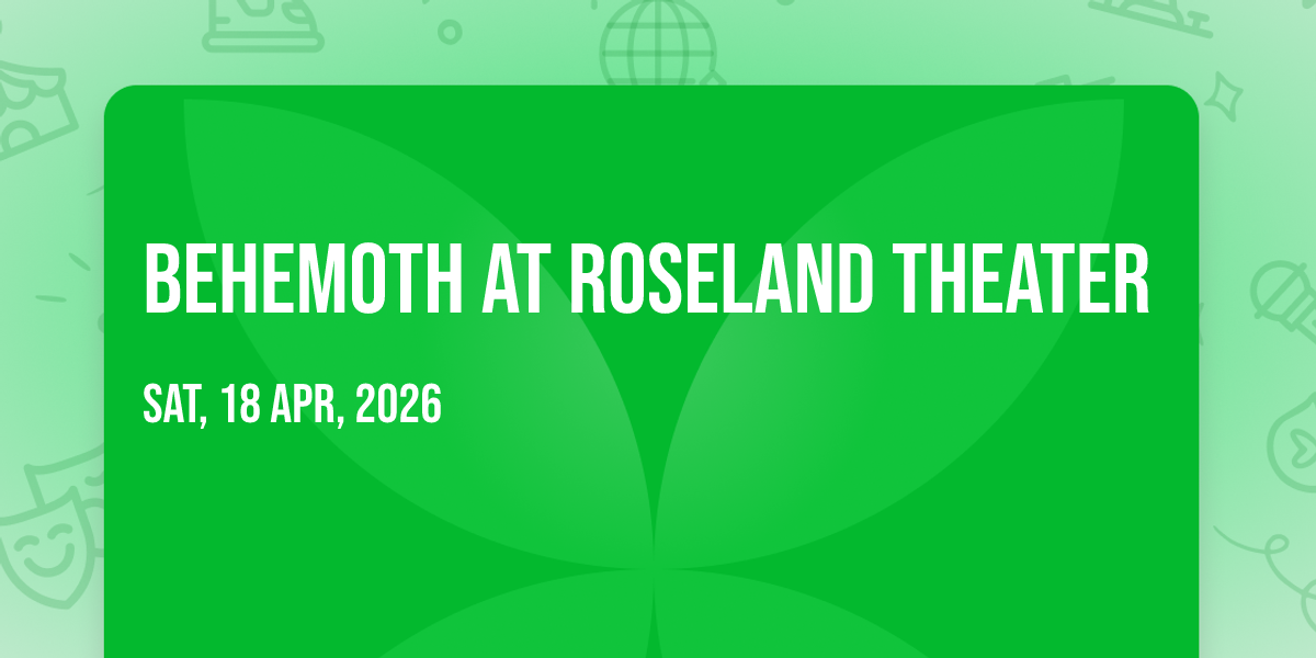 π Step into a world of wonder at Behemoth at Roseland Theater, where extraordinary moments await! ποΈ Located at Roseland Theater in dynamic Portland, OR, this event will become the talk of the town. π Join us on April 18th, 2026 at 06:30 PM for a celebration that defies the ordinary. β¨ This curated experience brings together the best of entertainment, culture, and community spirit. Every detail has been thoughtfully planned to ensure an unforgettable experience for all our guests. π― Take advantage of this opportunity to be part of something special. π Early registration is recommended as space is limited!