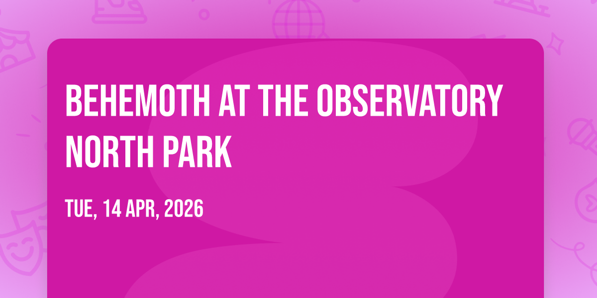 β¨ Embark on an extraordinary journey at Behemoth at The Observatory North Park, where every moment promises to be unforgettable! π Imagine of transforming The Observatory North Park in the heart of San Diego, CA into a realm of endless possibilities. π Join us on April 14th, 2026 at 05:30 PM for an experience that will challenge your imagination and exceed your expectations. π― This carefully curated event combines the finest elements of entertainment, innovation, and community spirit. Whether you're an adventure seeker, culture enthusiast, or someone looking for unique experiences, this event offers something special for everyone. π Don't miss this chance to be part of something extraordinary!