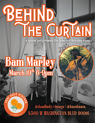 Join us for the next edition of Behind the Curtain featuring Bam Marley!Vibes will be strong, vintage will be prime for the picking!