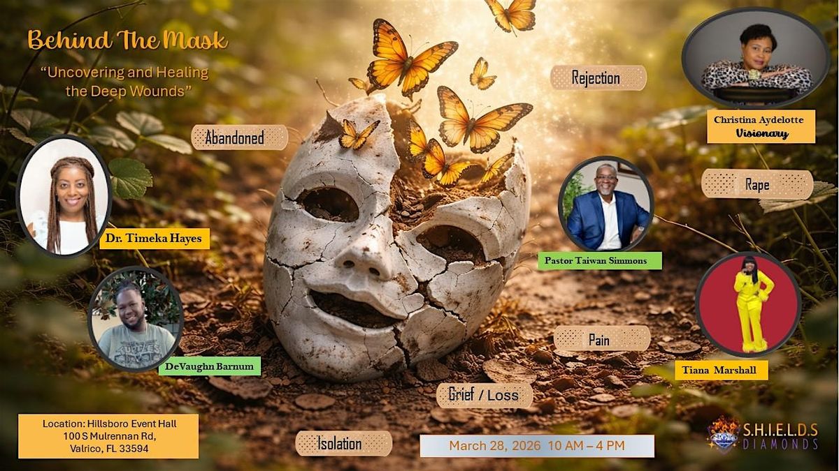Welcome to Behind The Mask "Uncovering and Healing the Deep Wounds" event! Join us on March 28, 2026 at 9:30 AM for a day of reflection and growth. This event will delve into the depths of our emotions and experiences, helping us heal from past wounds. Let's come together to uncover our true selves and support one another on this journey towards healing. Don't miss out on this opportunity for personal transformation! See you there!
