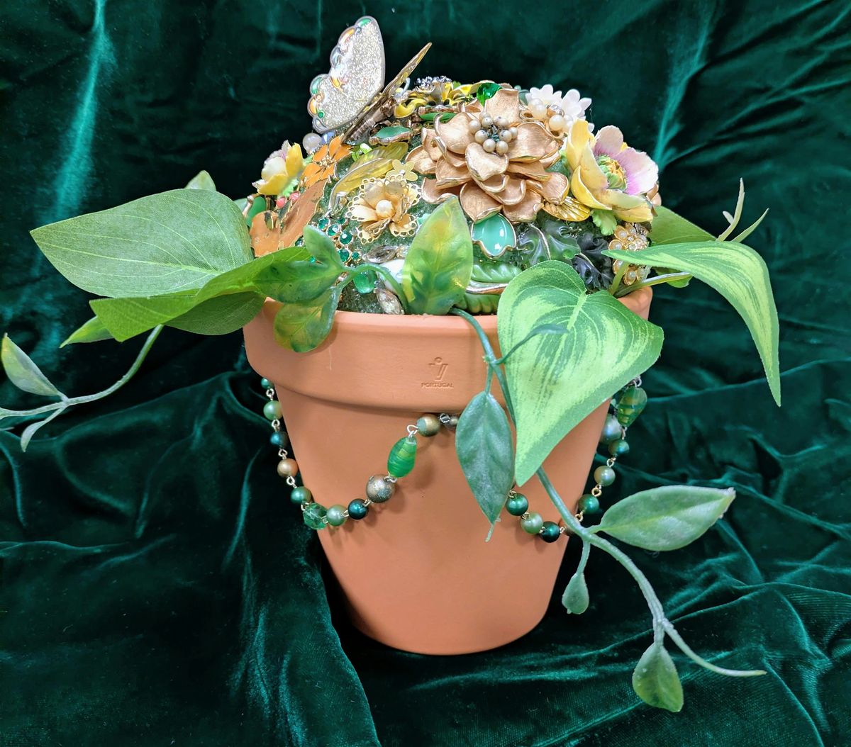 Using a real terracotta plant pot and one-of-a-kind vintage jewelry pieces, you will create the most dazzling house plant you've ever seen! The results are the most perfect house plant- it will never dry up or die!