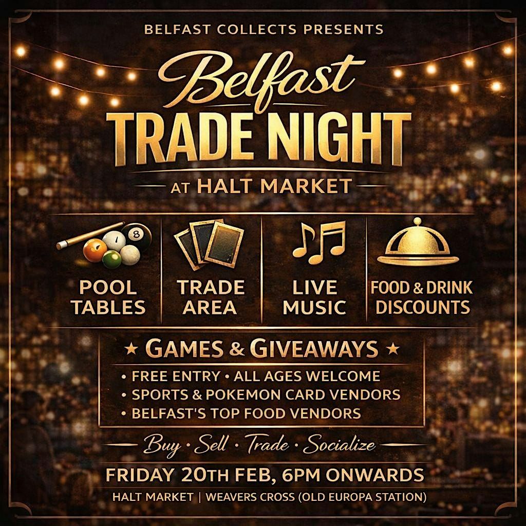 Belfast Collects presents Belfast Trade Night at Halt Market. Belfasts top food, Pokemon & sports vendors alongside live music & pool tables