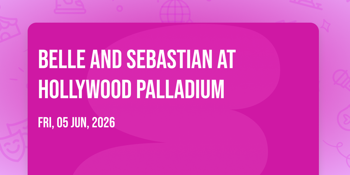 π Step into a world of wonder at Belle and Sebastian at Hollywood Palladium, where extraordinary moments await! ποΈ Located at Hollywood Palladium in dynamic Los Angeles, CA, this event will become the talk of the town. π Join us on June 5th, 2026 at 08:00 PM for a celebration that defies the ordinary. β¨ This curated experience brings together the best of entertainment, culture, and community spirit. Every detail has been thoughtfully planned to ensure an unforgettable experience for all our guests. π― Take advantage of this opportunity to be part of something special. π Early registration is recommended as space is limited!