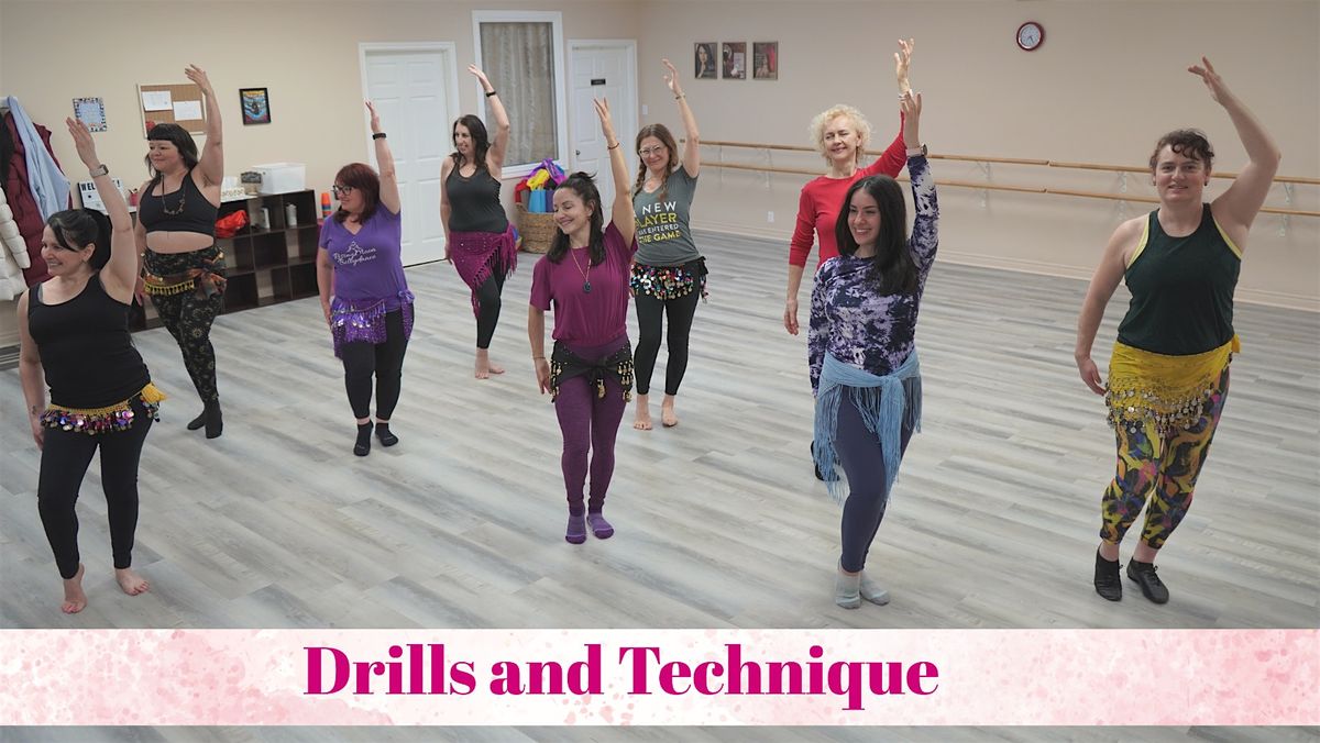 Dress comfortably (yoga pants or leggings and a tank top or t-shirt; a sports bra is also a good idea) and bring a water bottle to stay hydrated. No shoes are required but you can wear indoor shoes or non-slippery socks. Loaner hip scarves are available at the studio to use during class.