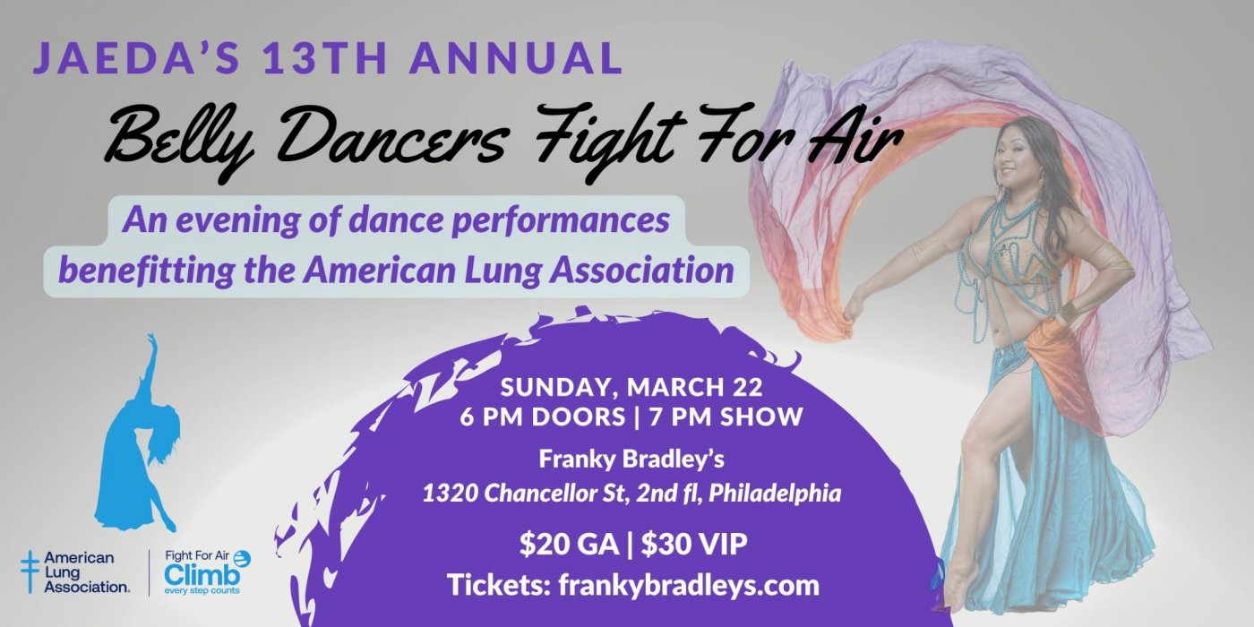 Join us as we celebrate Jaeda's 12th annual belly dance fundraiser! See some of Philly's favorite belly dancers for an evening of performances benefitting the American Lung Association's 2025 Fight For Air Climb.