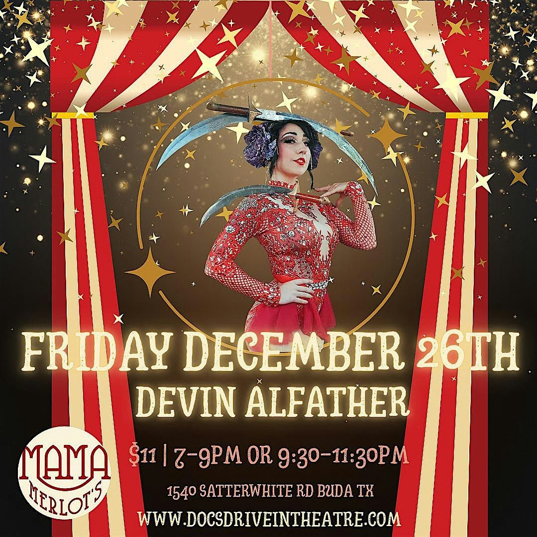 Welcome to the most exciting event of the year! Join us for Bellydancing, Bottle-walking & More with Devin Alfather at the Speakeasy. Get ready to be amazed by Devin's incredible skills and talent!