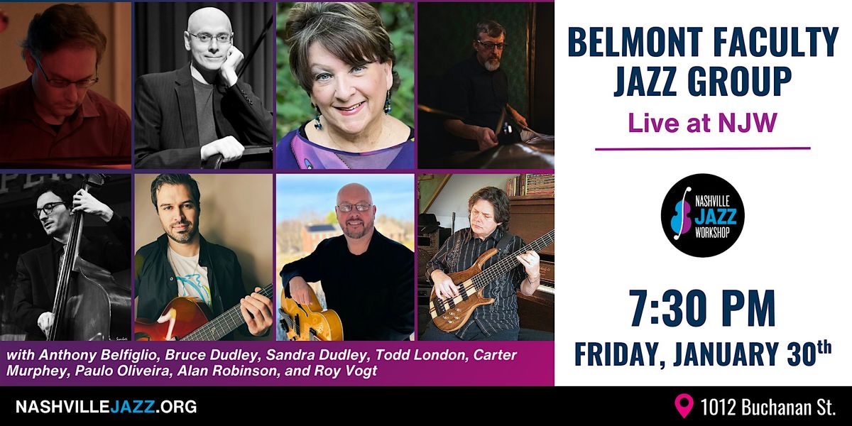 Join the Belmont Faculty Jazz Group at NJW for a unique evening featuring some of the best music educators in Music City! This concert will feature Alan Robinson (guitar), Carter Murphey (bass), Roy Vogt (bass), Paulo Oliveira (guitar), Bruce Dudley (piano), Todd London (drums), Anthony Belfiglio (piano), and Sandra Dudley (vocals).