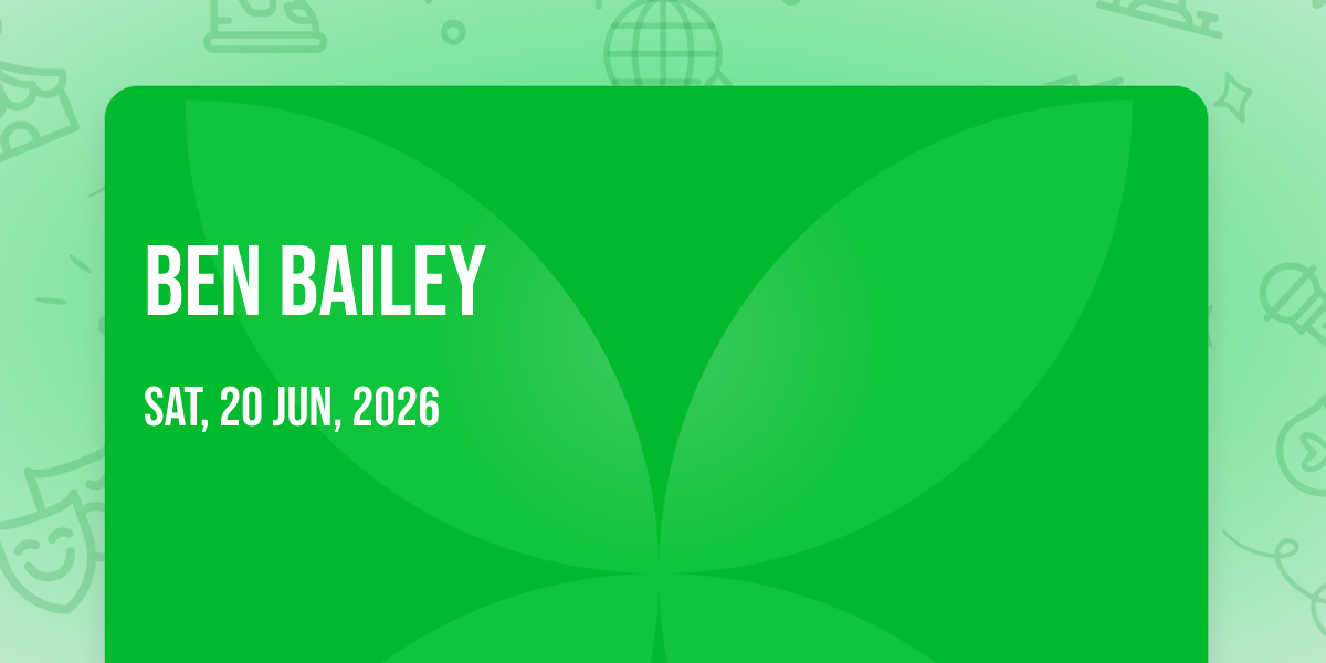 π Location: 42.4877, -83.142π Welcome to Ben Bailey, where dreams come alive and possibilities are endless! ποΈ Join us at Mark Ridley's Comedy Castle in the heart of Royal Oak, MI for an event that defies expectations. π On June 20th, 2026 at 11:00 PM, be part of something truly extraordinary as we bring together innovation, entertainment, and pure magic. β¨ Every aspect has been carefully designed to ensure an unforgettable experience for all our guests. Whether you're seeking adventure, inspiration, or simply a break from the ordinary, this event promises to deliver beyond your wildest dreams. π Prepare for a journey into the extraordinary!