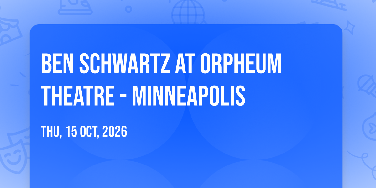 ✨ Discover the extraordinary at Ben Schwartz at Orpheum Theatre - Minneapolis, where magic meets reality in ways you've never imagined! 🏛️ Set in Orpheum Theatre - Minneapolis nestled in bustling Minneapolis, MN, this event promises to be a landmark occasion. 📅 Taking place on October 15th, 2026 at 08:00 PM, it's going to create an atmosphere where every moment becomes a cherished memory. 🌟 Immerse yourself in an experience crafted with attention to every detail, designed to surprise and delight at every turn. They have worked tirelessly to ensure this event exceeds all expectations, bringing together elements of entertainment, innovation, and pure joy. 🎊 Don't miss your chance to be part of this remarkable journey!