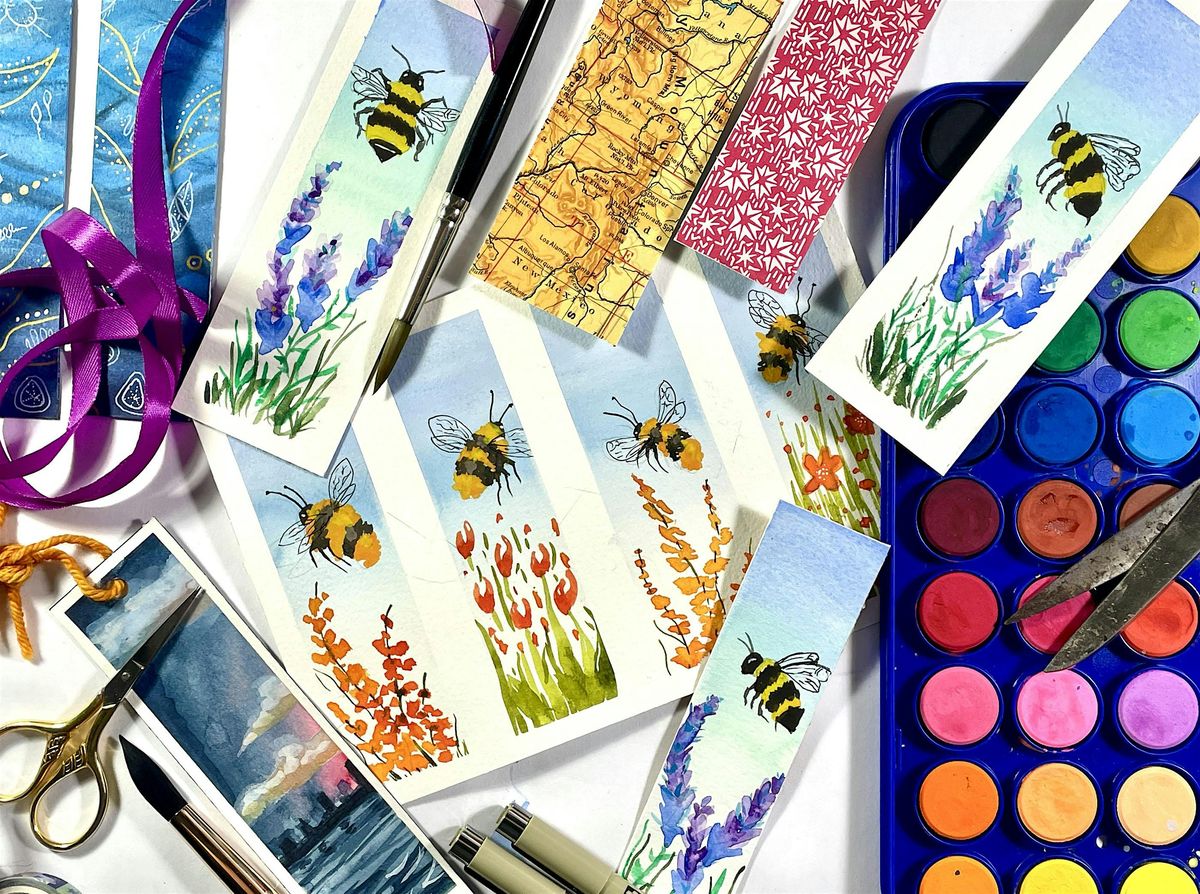 In this unique class, you’ll learn about bees, butterflies, beetles, and other beneficial insects while creating your own set of illustrated bookmarks using watercolor, marker, and ink. Your finished artwork will be cut into four bookmarks, mounted on decorative paper, and optionally finished with ribbon—perfect to keep or share as gifts.