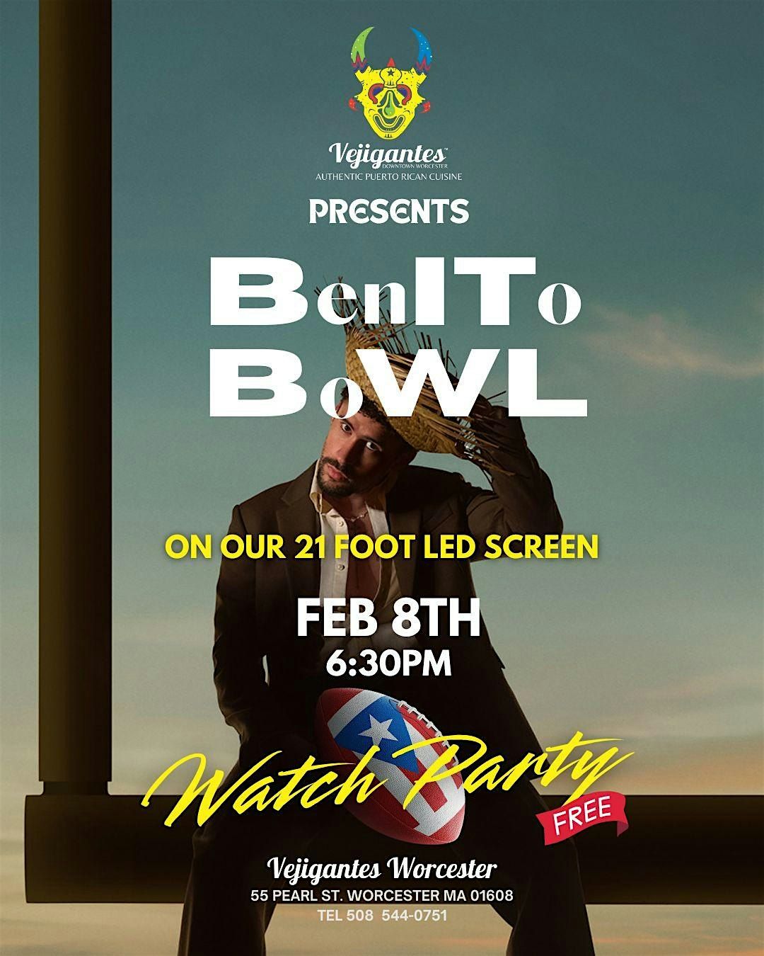 #superbowl #boricua #watchparty #Worcester #vejigantes #patriots #springfield #shrewbury #holden #millbury #grafton #paxton #auburn #westboylston #badbunny