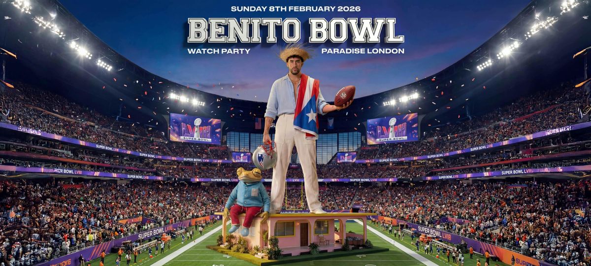 🔥🏈🎤 BENITO BOWL WATCH PARTY 🎤🏈🔥LIVE at Paradise Club – London’s Ultimate Super Bowl Screening & Party Experience📅 SUNDAY 8TH FEBRUARY 2026📍 Paradise Club🕘 9PM – 2:30AM