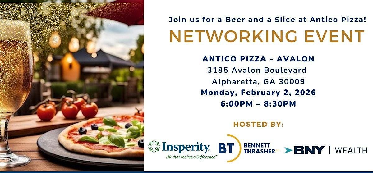 Grab a cold one and a slice with Bennett Thrasher, Insperity, BNY Wealth pros and many others—network, chat, and connect in person!About this Event