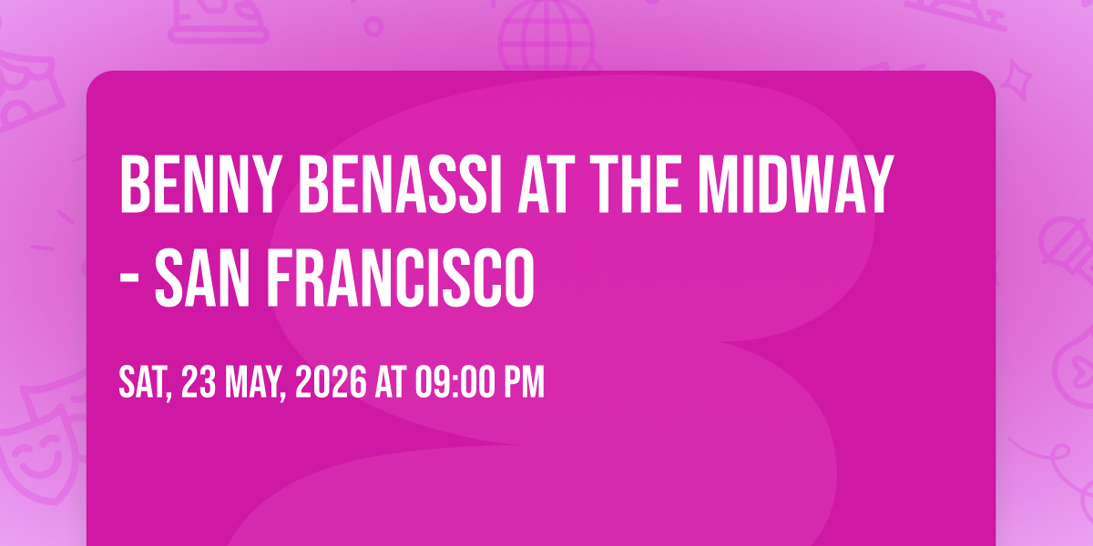 ✨ Embark on an extraordinary journey at Benny Benassi at The Midway - San Francisco, where every moment promises to be unforgettable! 🌟 Imagine of transforming The Midway - San Francisco in the heart of San Francisco, CA into a realm of endless possibilities. 📅 Join us on May 23rd, 2026 at 09:00 PM for an experience that will challenge your imagination and exceed your expectations. 🎯 This carefully curated event combines the finest elements of entertainment, innovation, and community spirit. Whether you're an adventure seeker, culture enthusiast, or someone looking for unique experiences, this event offers something special for everyone. 🎊 Don't miss this chance to be part of something extraordinary!