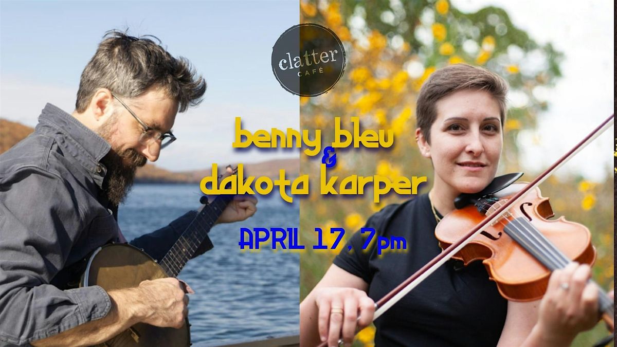 Their Bio: Benny Bleu and Dakota Karper are an acoustic folk duo weaving music from the high mountain ridges of West Virginia and the deep lakes of upstate New York into a shared soundscape. With blended vocal harmonies and meditative grooves between banjo and fiddle, their music offers a fresh, present-day perspective grounded in the traditional roots that shaped their sound. Drawing on Dakota’s Appalachian old-time lineage and Benny’s Finger Lakes banjo tradition, the duo creates intimate, transportive performances that celebrate place, community, and the ongoing story of folk music. More at: www.bennybleu.com || www.dakotakarper.com
