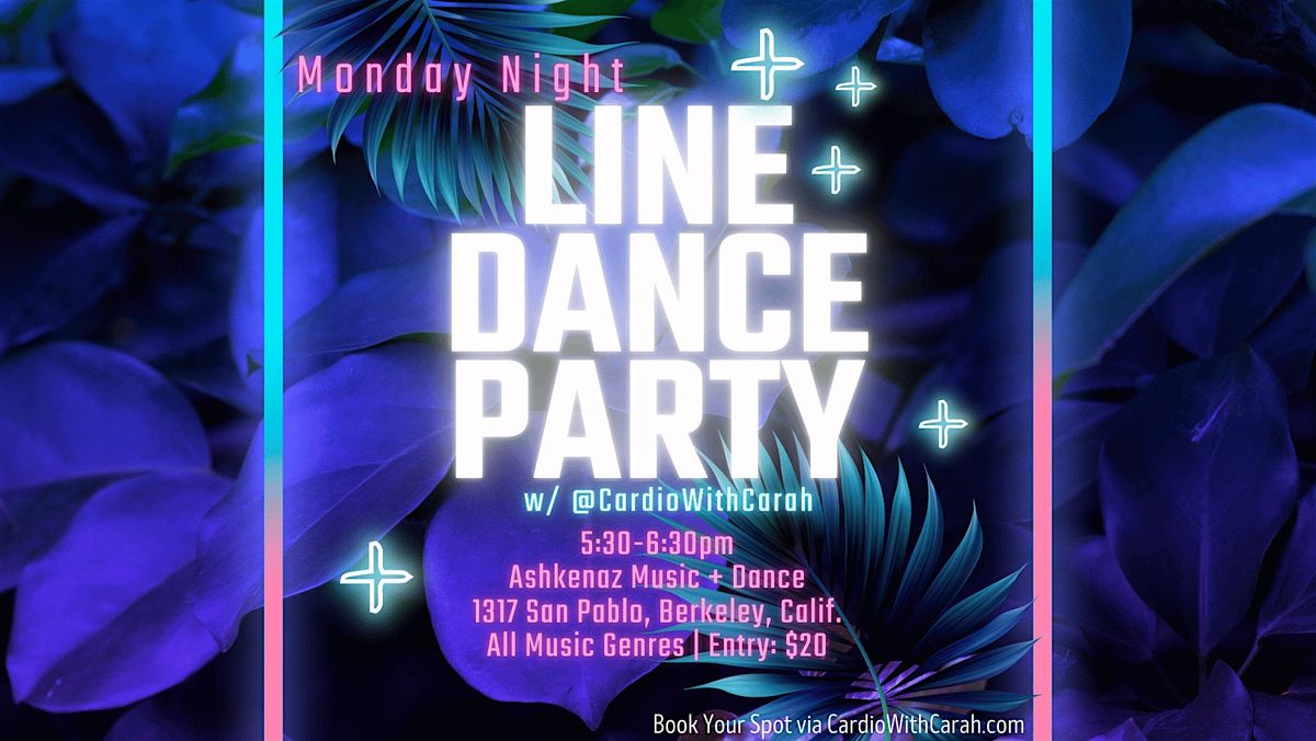Join @CardioWithCarah weekly for Line Dancing. This special indoor party is every Monday from 5:30-6:30pm at Ashkenaz Music & Dance Community Center (1317 San Pablo, Berkeley, Calif). What time of line dancing? ALL GENRES! Country. RnB. Jazz. Hip Hop. Pop.