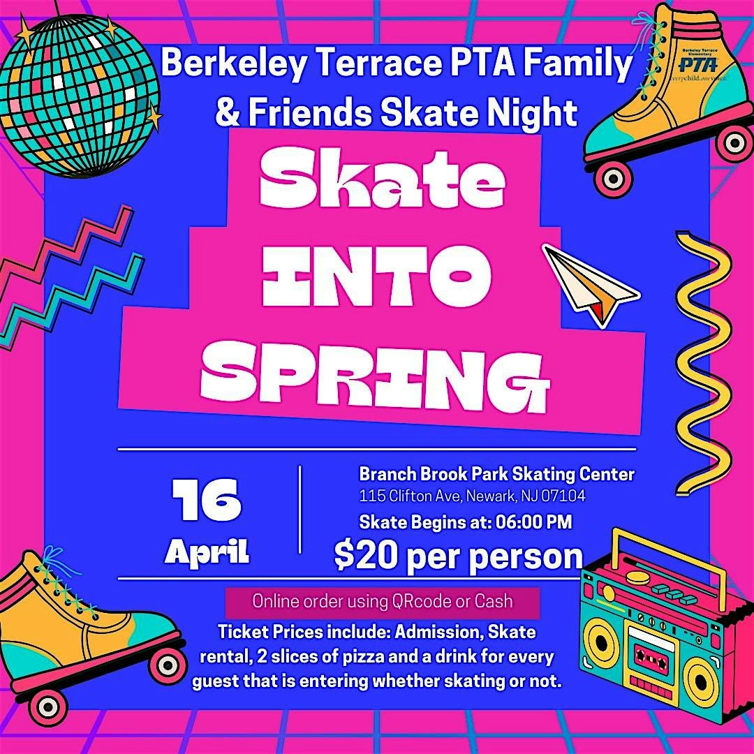 Come join us for a fun-filled evening at the Berkeley Terrace PTA Family & Friends Skate Night! It’s the perfect chance to hang out with your crew, enjoy some skating, and make awesome memories. Whether you’re a pro or just starting out, everyone’s welcome to roll along and have a blast. Don't miss out on this fantastic in-person gathering – see you on the rink!