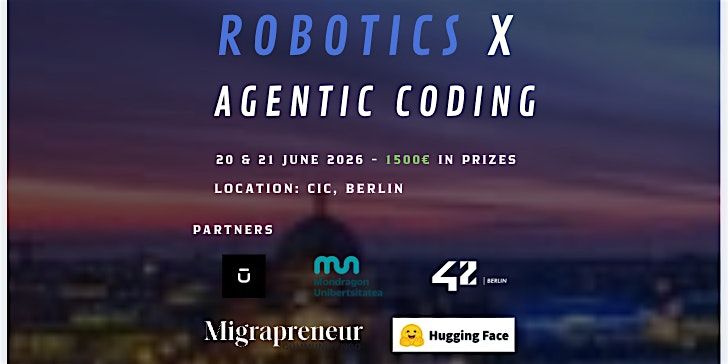Join us for the first edition of the Berlin Robotics x Agentic coding Hackathon, a weekend of innovation, collaboration, and building the future of Robotics.