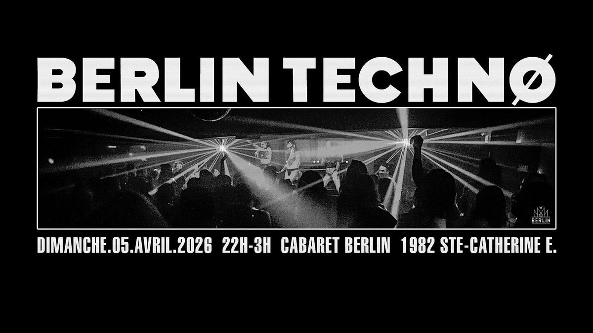 BERLIN TECHNO --> DIMANCHE 5 AVRIL 2026 @ Cabaret Berlin, Montréal : Techno berlinoise sombre et intense toute la nuit.