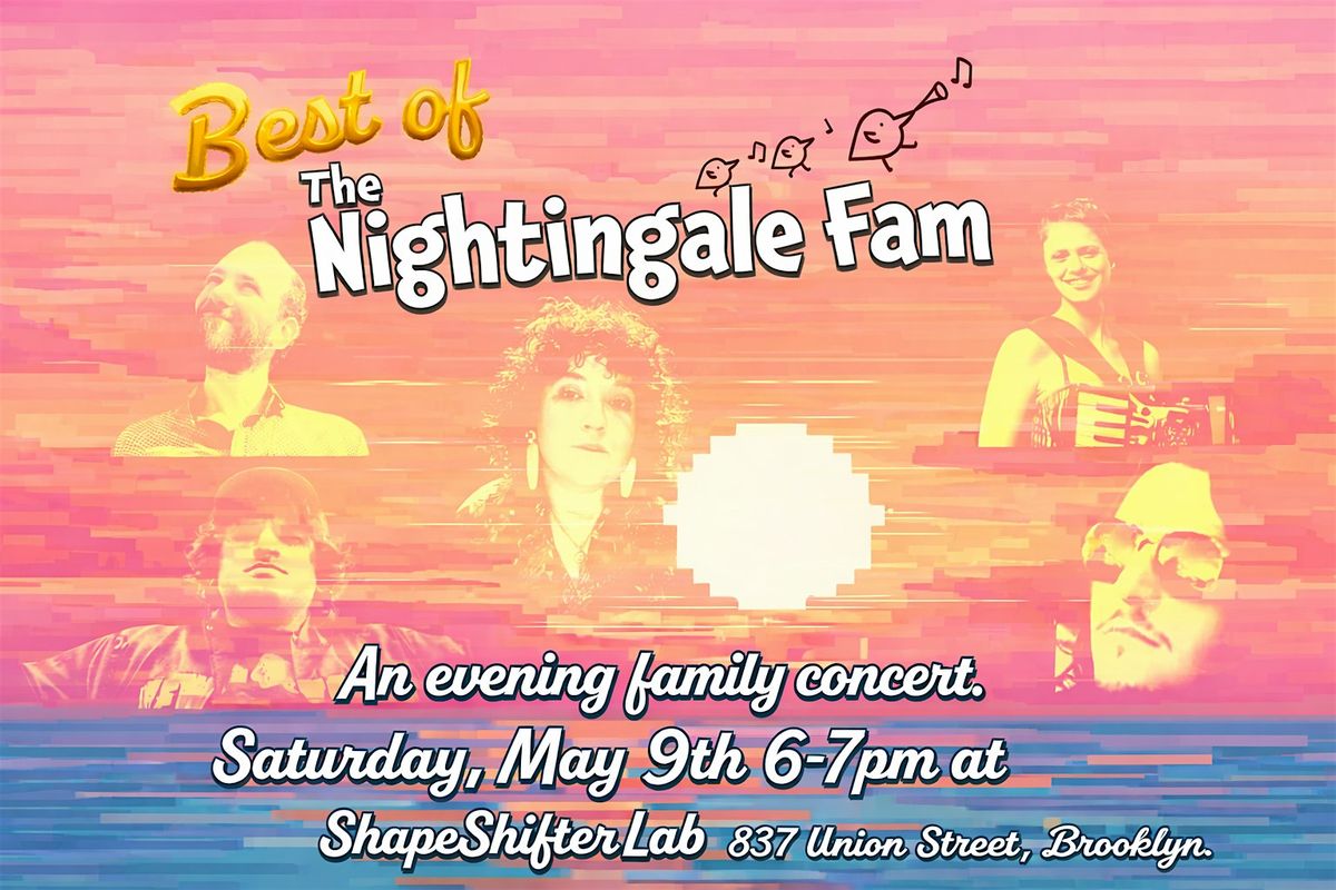 Since 2019, The Nightingale Fam has led eclectic musical storytelling programs at parks, libraries and venues from Brooklyn Bowl to Greenlight Bookstore. The original Nightingale Fam band, featuring Mary Knapp, Teagan Taylor, Doug Berns, Sean Salant and Ethan Meyer, makes its grand return for a very special Mother’s Day Eve concert featuring sparkly originals and rock & pop faves.