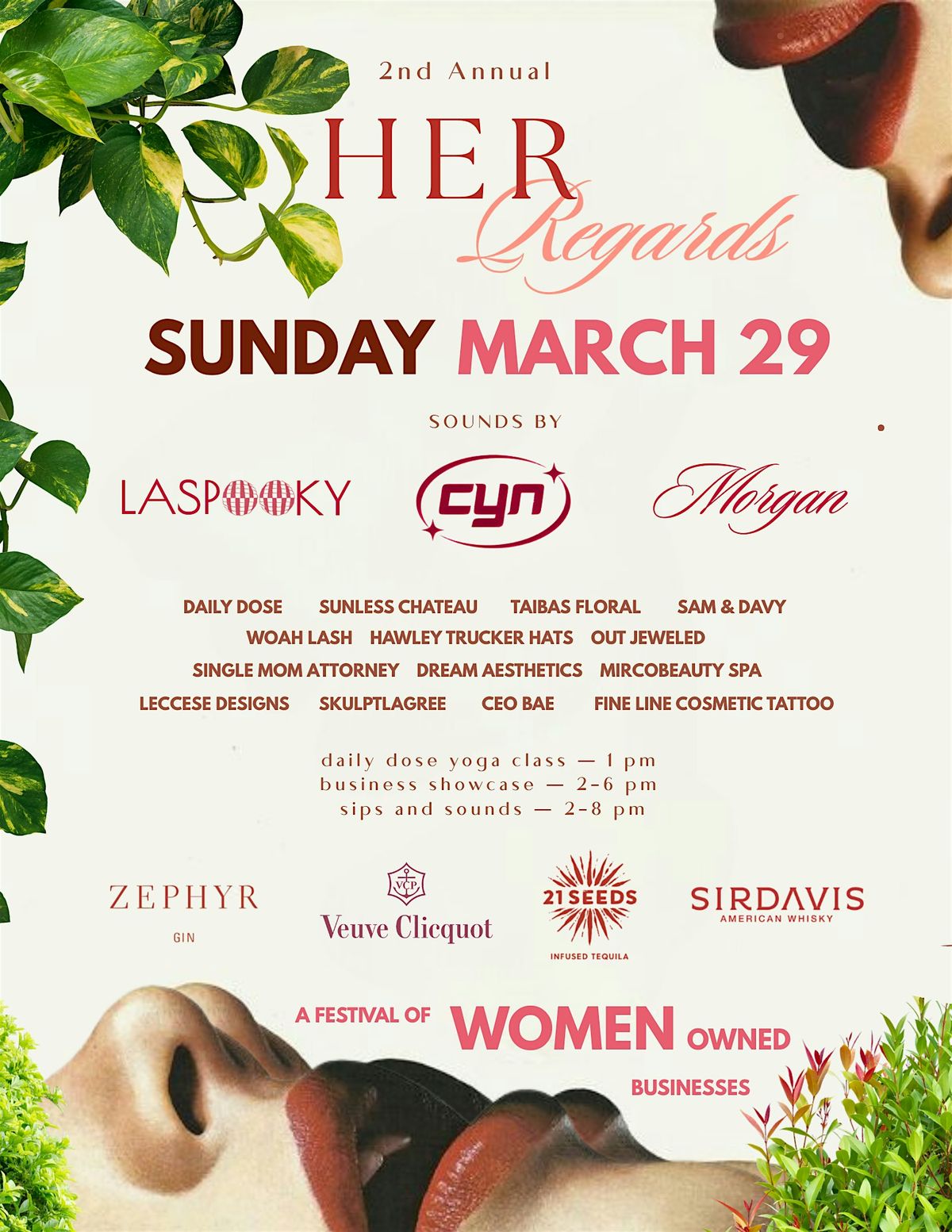 2p - 8p Sip and Sounds - Stay after class for Her Regards celebration showcasing local women owned businesses with DJs and signature women-inspired cocktails.