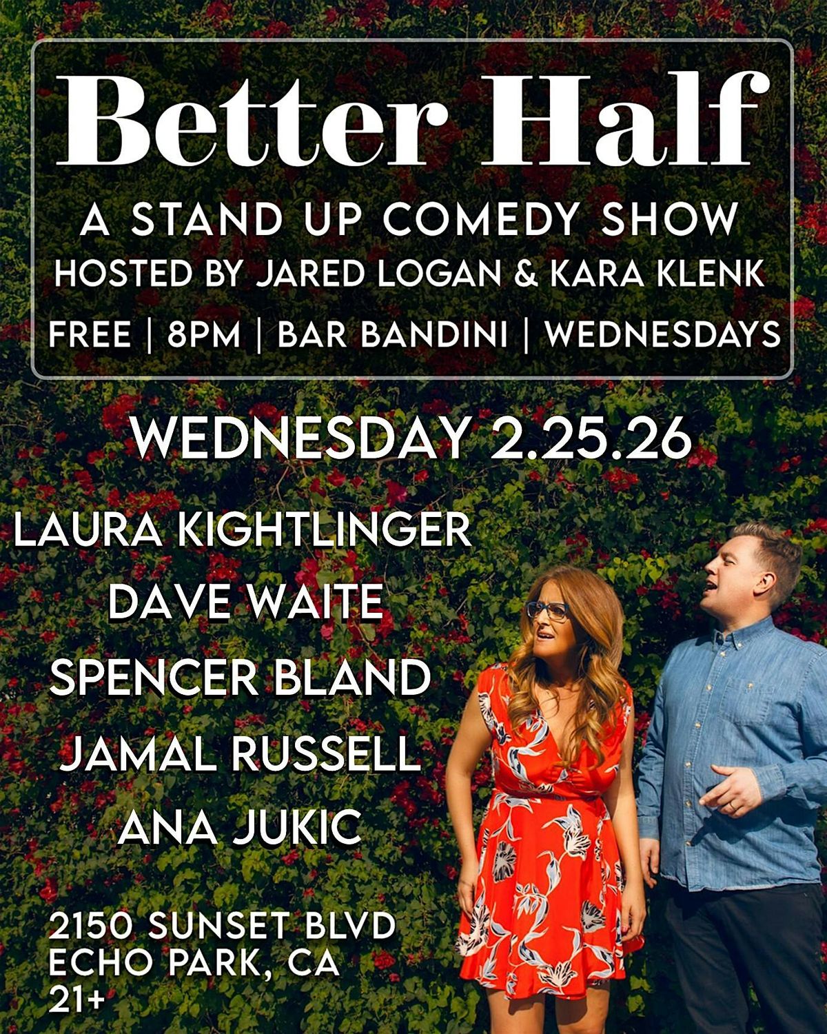 Come see our FREE stand up comedy show, now every Wednesday night at our new home in Echo Park. On the back patio of Bar Bandini, we showcase comics from Comedy Central, Netflix, HBO, and everything in between! Come early to grab a seat and get a drink special!