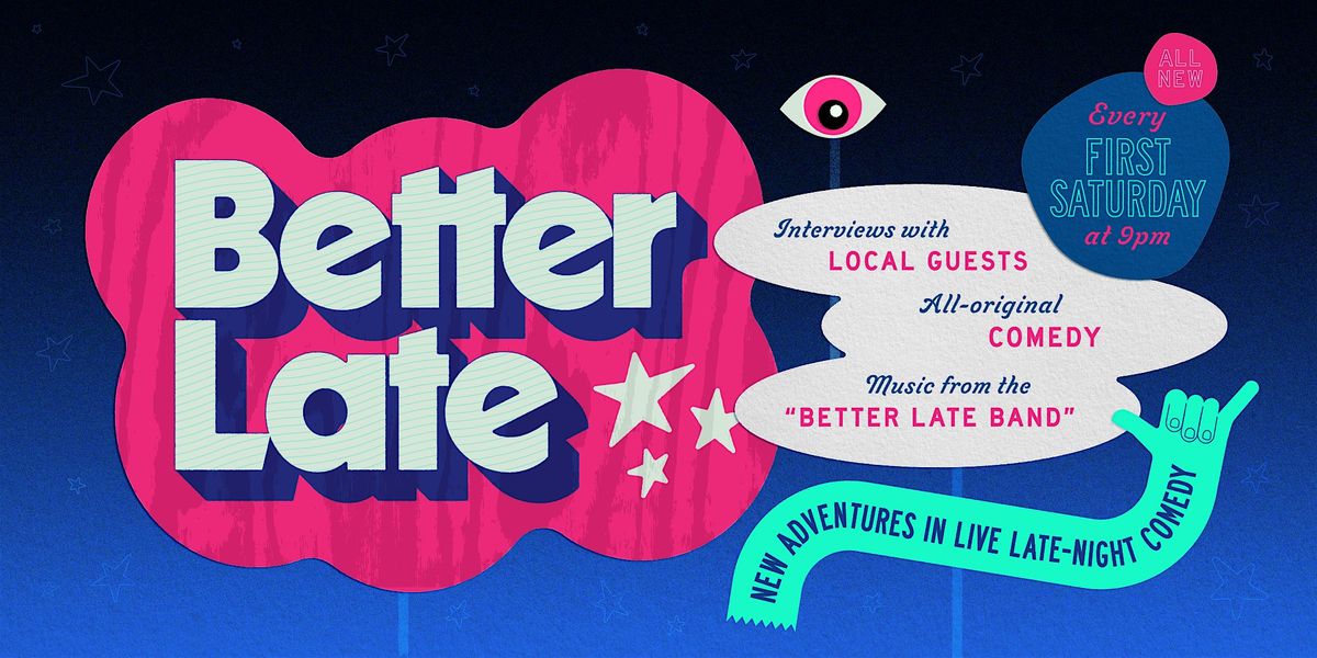 Better Late is Coalition Theater’s monthly late night show hosted by Josh Bluebaugh, Kimberly Nario and Sara Schaefer. Hand-crafted by a team of Richmond’s best comedy writers and producers, Better Late features interesting guests from near and far, live music, and joyous comedy with a dash of chaos.