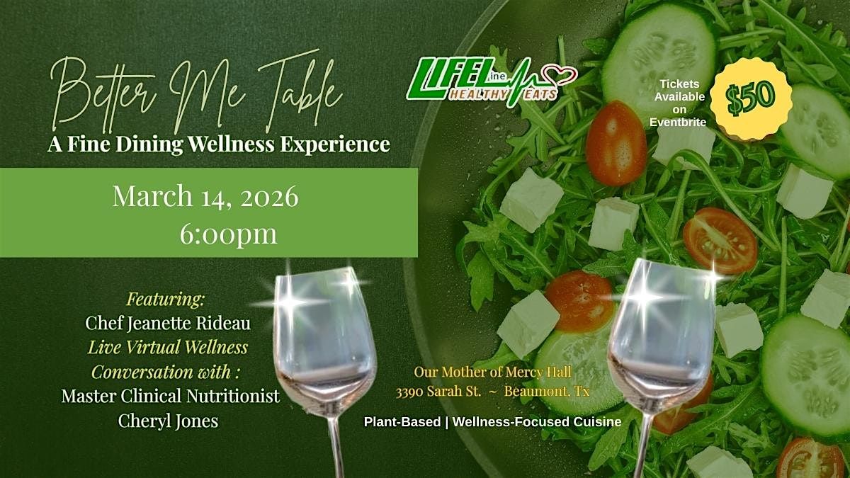 The Better Me Table is an intimate wellness dining experience curated by Lifeline Healthy Eats. This gathering is designed to create space for reflection, nourishment, and meaningful connection through thoughtfully prepared plant-based cuisine and guided conversation centered on personal growth and wellbeing.