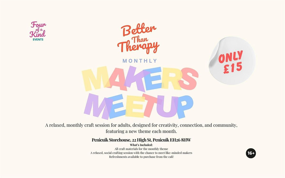 Join us for Better Than Therapy: Monthly Makers Meet-Up, a friendly crafting session designed to help you unwind, connect, and get creative. Each month features a new theme, giving you a chance to try something different while meeting other like-minded makers.