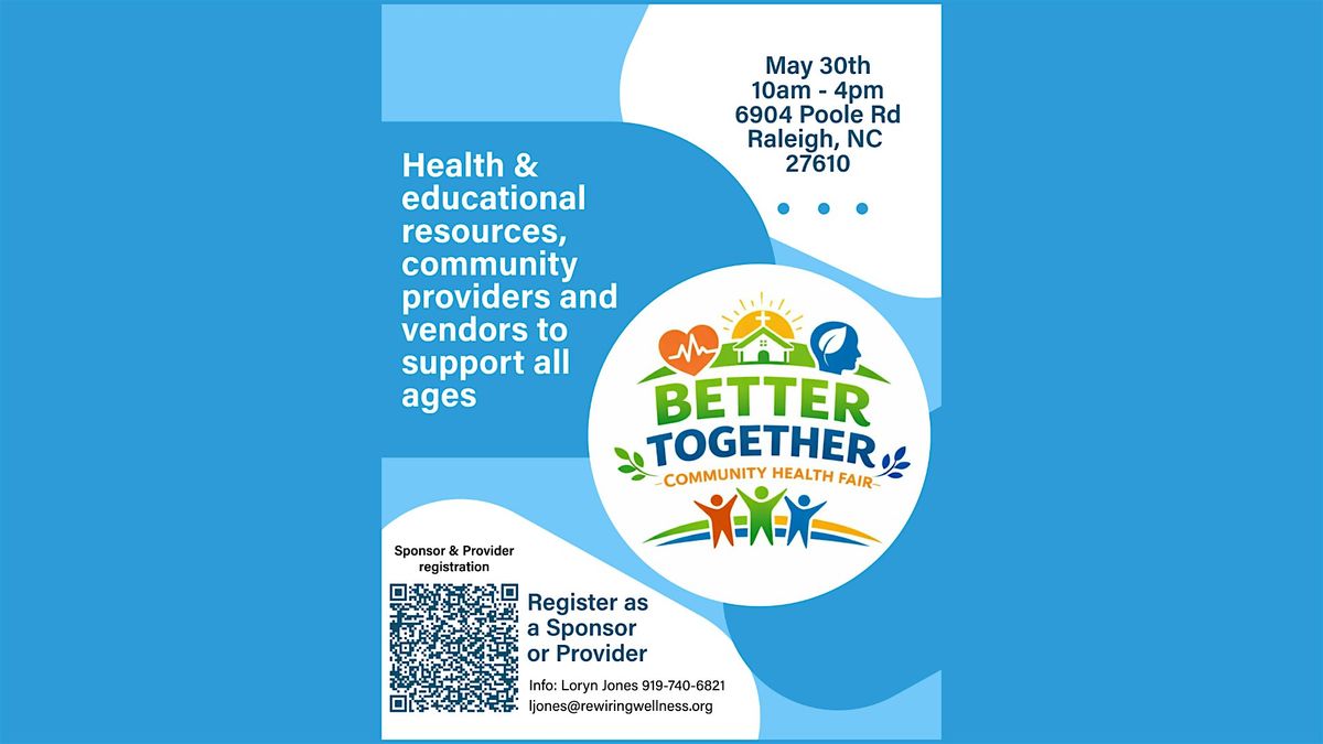Our Better Together Health Fair takes place on Saturday, May 30th, 2026. Sponsor & Provider Registration closes on April 15th, 2026.