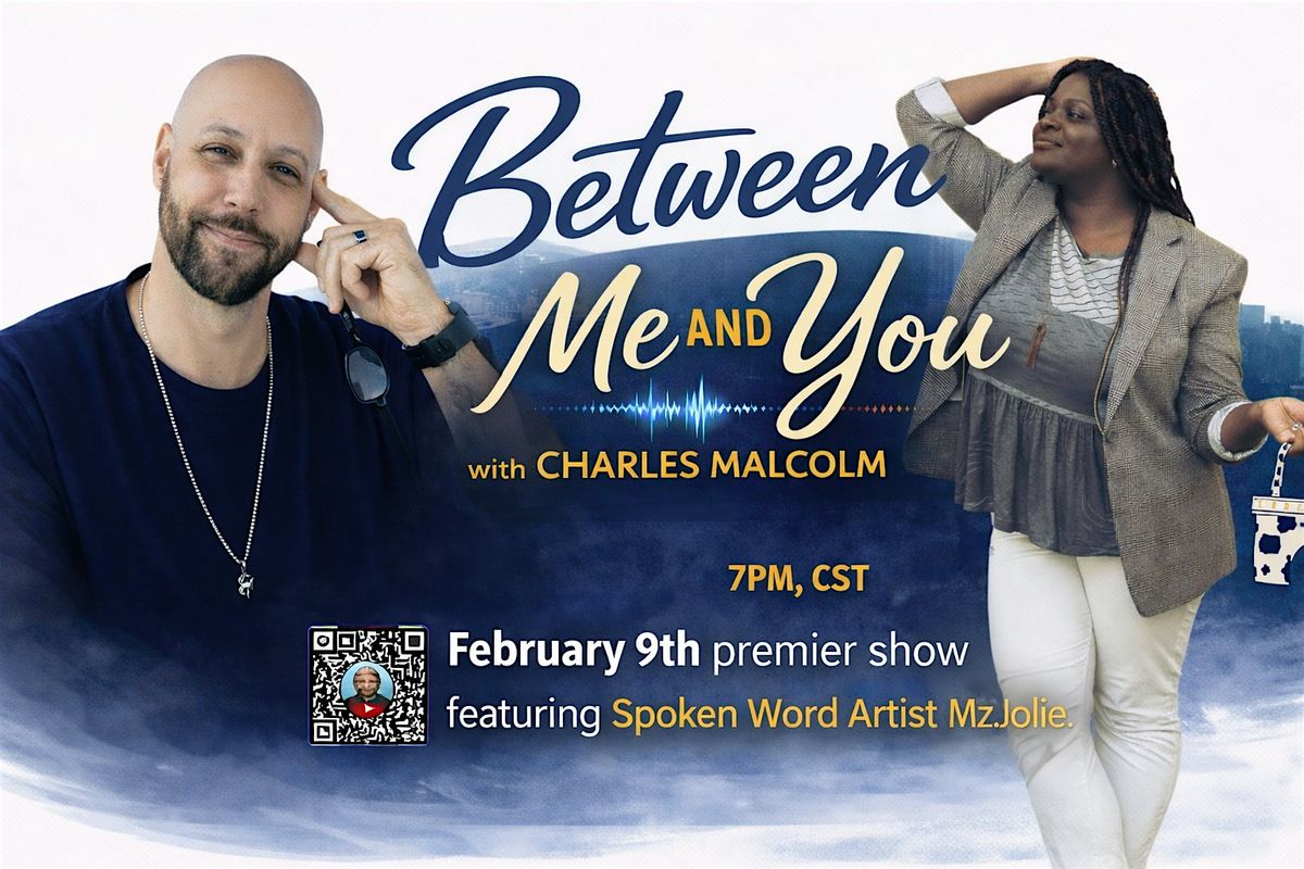 The debut of Between Me and You with Charles Malcolm—real talk, rhythm, and healing—featuring spoken word artist Mz. Jolie. Feb 9, 7PM CST.