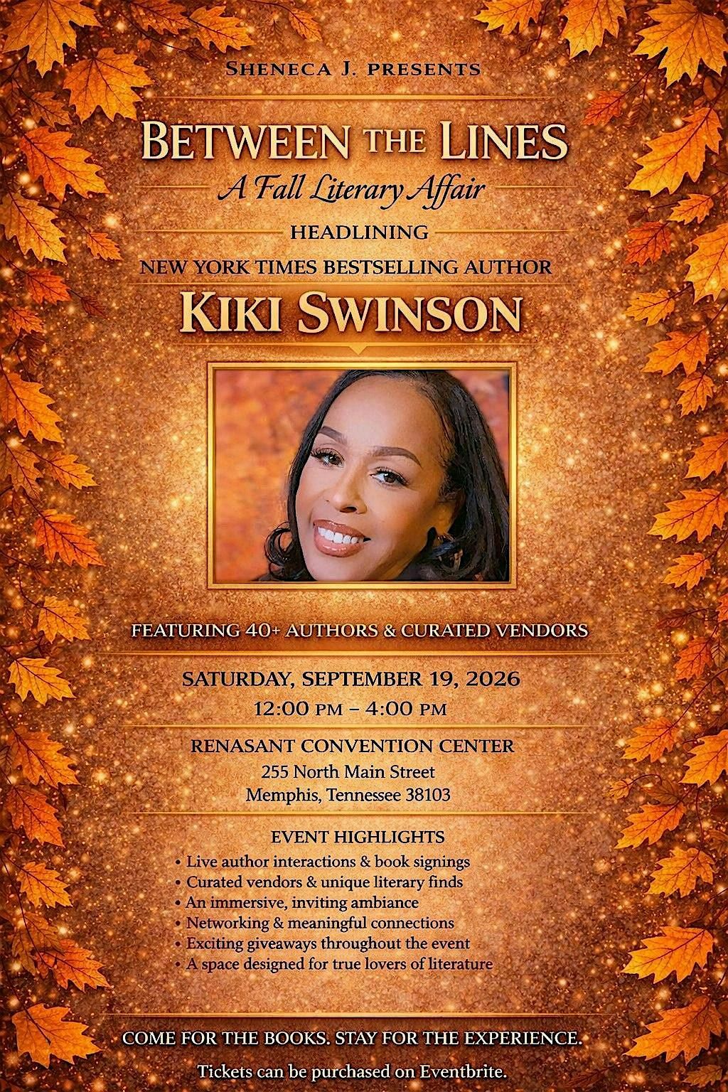 Join us for Between the Lines: A Fall Literary Affair, a curated experience celebrating reading, culture, and connection. This highly anticipated event will feature New York Times bestselling author Kiki Swinson alongside 40+ authors and curated vendors, bringing together book lovers for an unforgettable afternoon.
