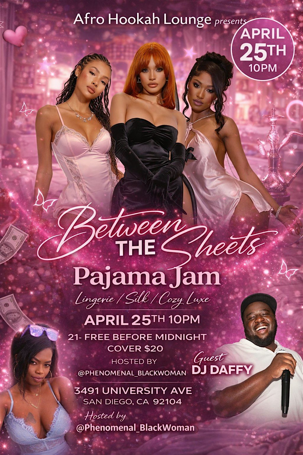 It’s about to get real cozy at Between The Sheets Pajama Jam 😏✨ Pull up looking soft, sexy, and luxurious — we setting the tone ALL night 🔥