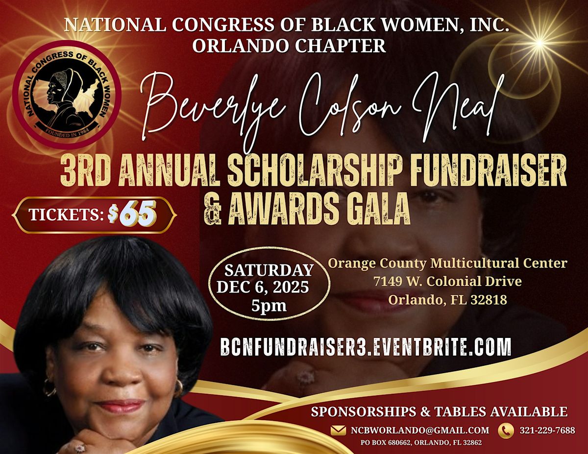 Orlando, FL – December 6, 2025 – The National Congress of Black Women, Inc. (NCBW), Orlando Chapter, is proud to present its 3rd Annual Scholarship Fundraiser & Awards Gala, honoring Beverlye Colson Neal for her outstanding contributions and leadership.